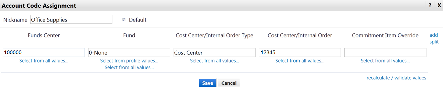 Account Code Favourites