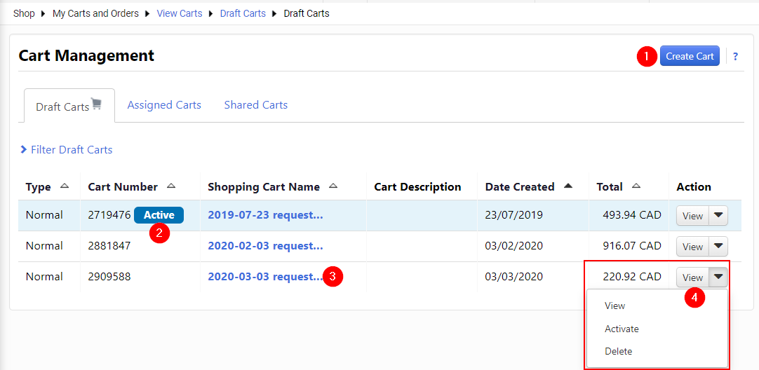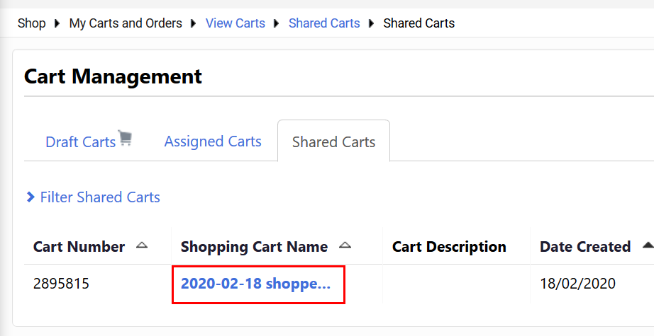Create Shared Cart Group